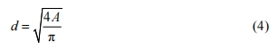 式中: A 為顆粒圖像的面積,通過(guò)顆粒占據(jù)的像素點(diǎn)數(shù)目來(lái)求取。