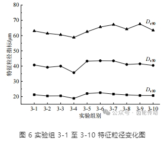分別統(tǒng)計(jì)實(shí)驗(yàn)組 3-1 組和 3-10 組的磨粒粒徑分布情況,以體積分布繪制成粒度累積分布曲線,如圖 5 所示,兩者的粒度累積分布曲線形態(tài)接近。針對(duì)該兩組實(shí)驗(yàn)的數(shù)據(jù),分別計(jì)算其 Dv50,得到 3-1、3-10 實(shí)驗(yàn)組的 Dv50分別為 40.71、40.43 μm,兩者結(jié)果同樣相近。結(jié)果初步表明,全息測(cè)量系統(tǒng)在較低磨粒濃度下測(cè)得的磨粒粒徑結(jié)果與在較高磨粒濃度下測(cè)得的結(jié)果基本一致。