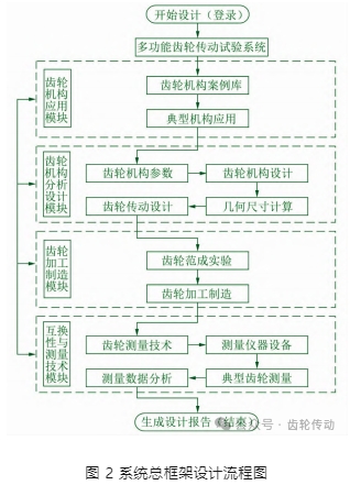 圍繞齒輪傳動(dòng)試驗(yàn)系統(tǒng)的開發(fā)腳本,制定從設(shè)計(jì)開始至設(shè)計(jì)結(jié)束的全過程功能框架流程圖,如圖 2 所示。