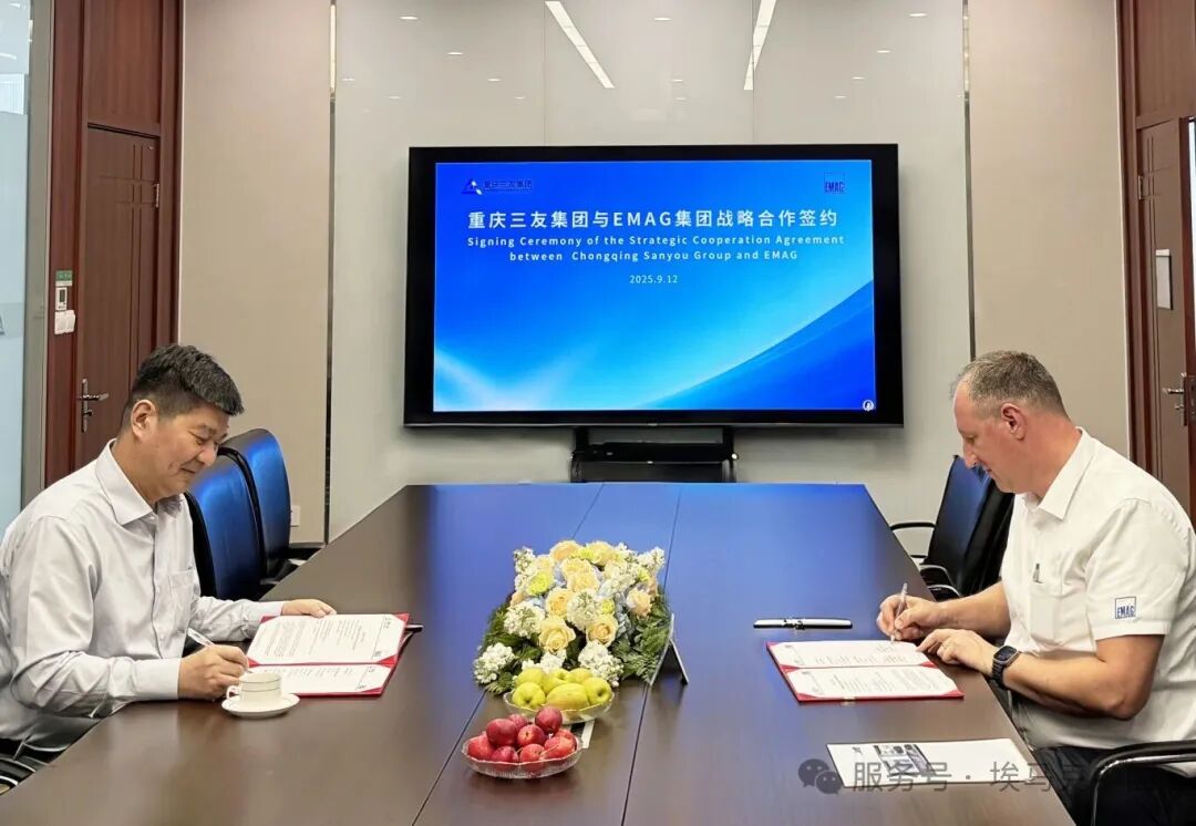 September 12, 2025 – The EMAG Group officially signed a strategic cooperation agreement with the Chongqing Sanyou Group, a core manufacturer of automotive components in China. The signing ceremony was held at Sanyou Group's Tongliang factory in Chongqing, attended by Markus Clement, Global CEO of EMAG Group, and Shen Wenjun, Executive Chairman and President of Sanyou Group. This strategic partnership represents a significant decision built upon years of successful collaboration and deep mutual trust, taking the relationship to a new level of comprehensive, deepened, and upgraded cooperation.