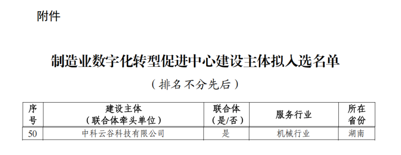 ▲中聯(lián)重科中科云谷入選全國首批制造業(yè)數(shù)字化轉(zhuǎn)型促進(jìn)中心建設(shè)主體名單